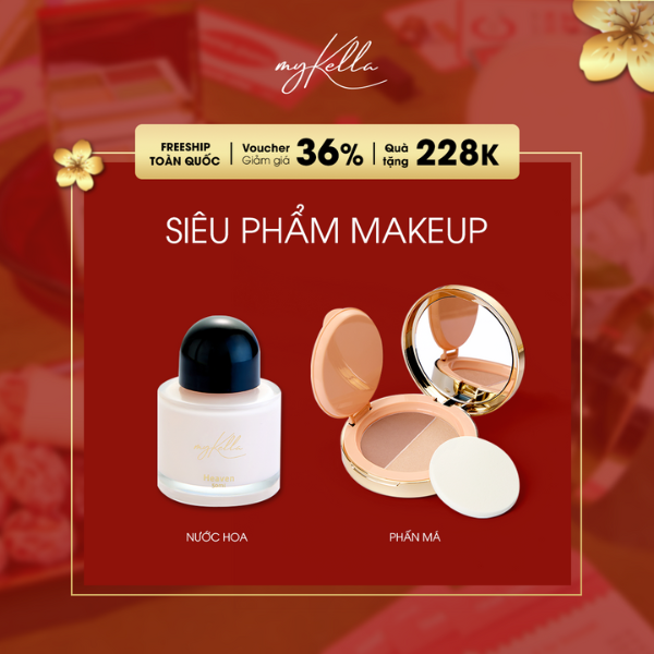 1. Tặng 01 son myKella và 01 mút trang điểm cho mọi đơn hàng từ 1TR2