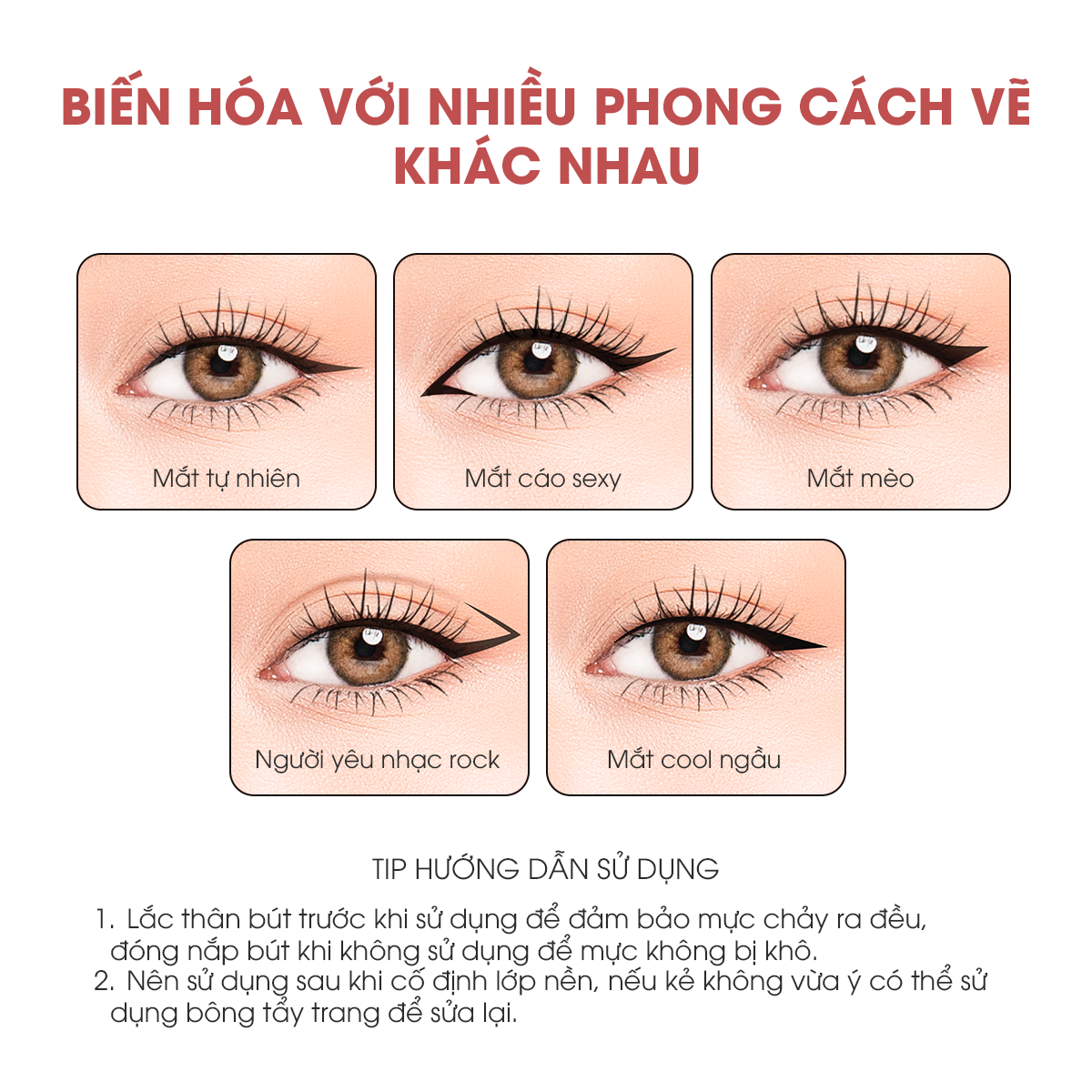 - Linh hoạt trong cách sử dụng: Dễ dàng điều chỉnh độ dày mỏng của đường kẻ theo phong cách trang điểm mong muốn.