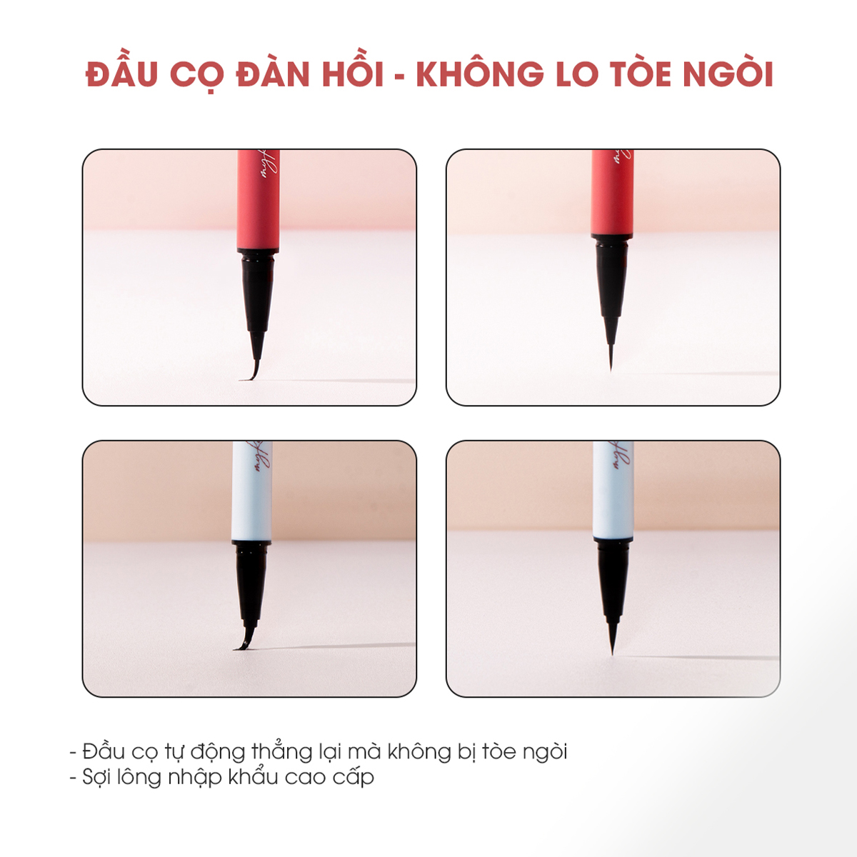 - Dễ sử dụng, thao tác chuẩn xác: Thiết kế đầu cọ giúp kiểm soát nét vẽ, tạo hiệu ứng mắt to tròn hoặc sắc sảo theo ý thích.