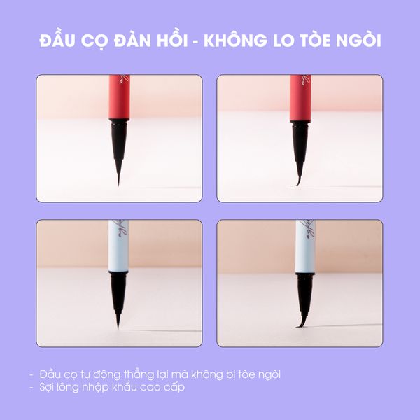 - Linh hoạt trong cách sử dụng: Dễ dàng điều chỉnh độ dày mỏng của đường kẻ theo phong cách trang điểm mong muốn.