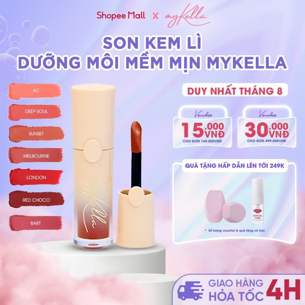 - Son kem myKella được nghiên cứu kỹ lưỡng để đáp ứng nhu cầu của những tín đồ yêu thích son lì nhưng vẫn giữ được độ mềm mịn cho môi.