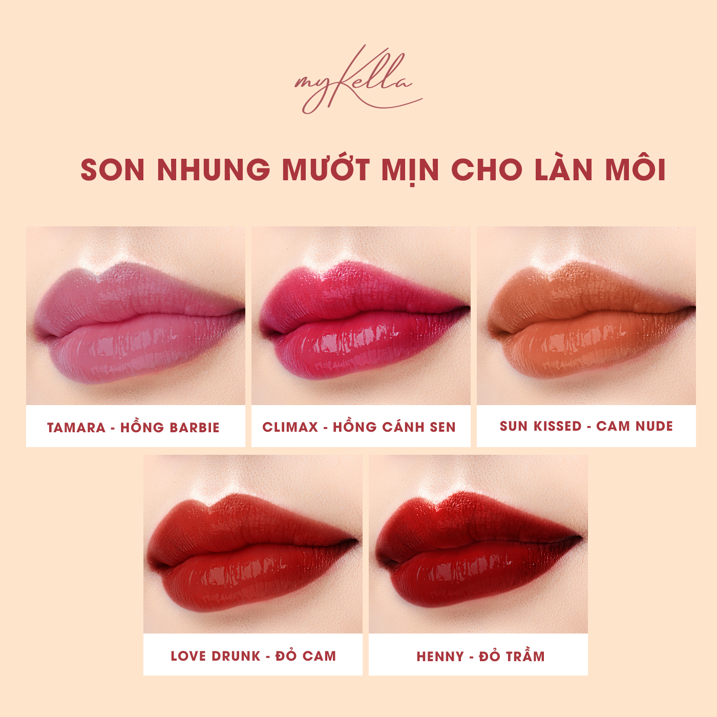 - Son myKella được nghiên cứu kỹ lưỡng để đáp ứng nhu cầu của những tín đồ yêu thích son kem nhưng vẫn giữ được độ mềm mịn cho môi.